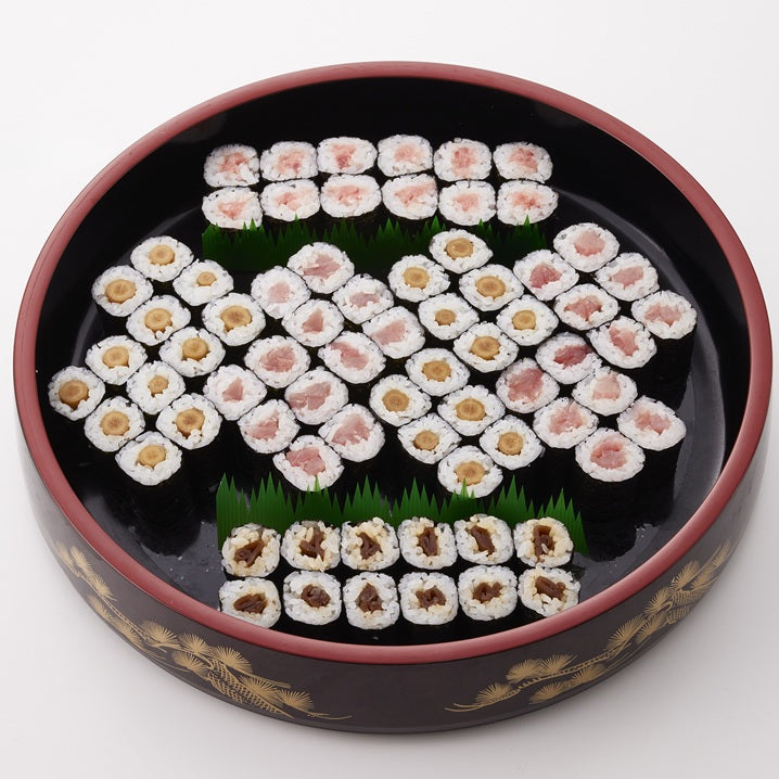 鮪たたき巻2本、鉄火巻4本、山ごぼう巻4本、干瓢巻2本